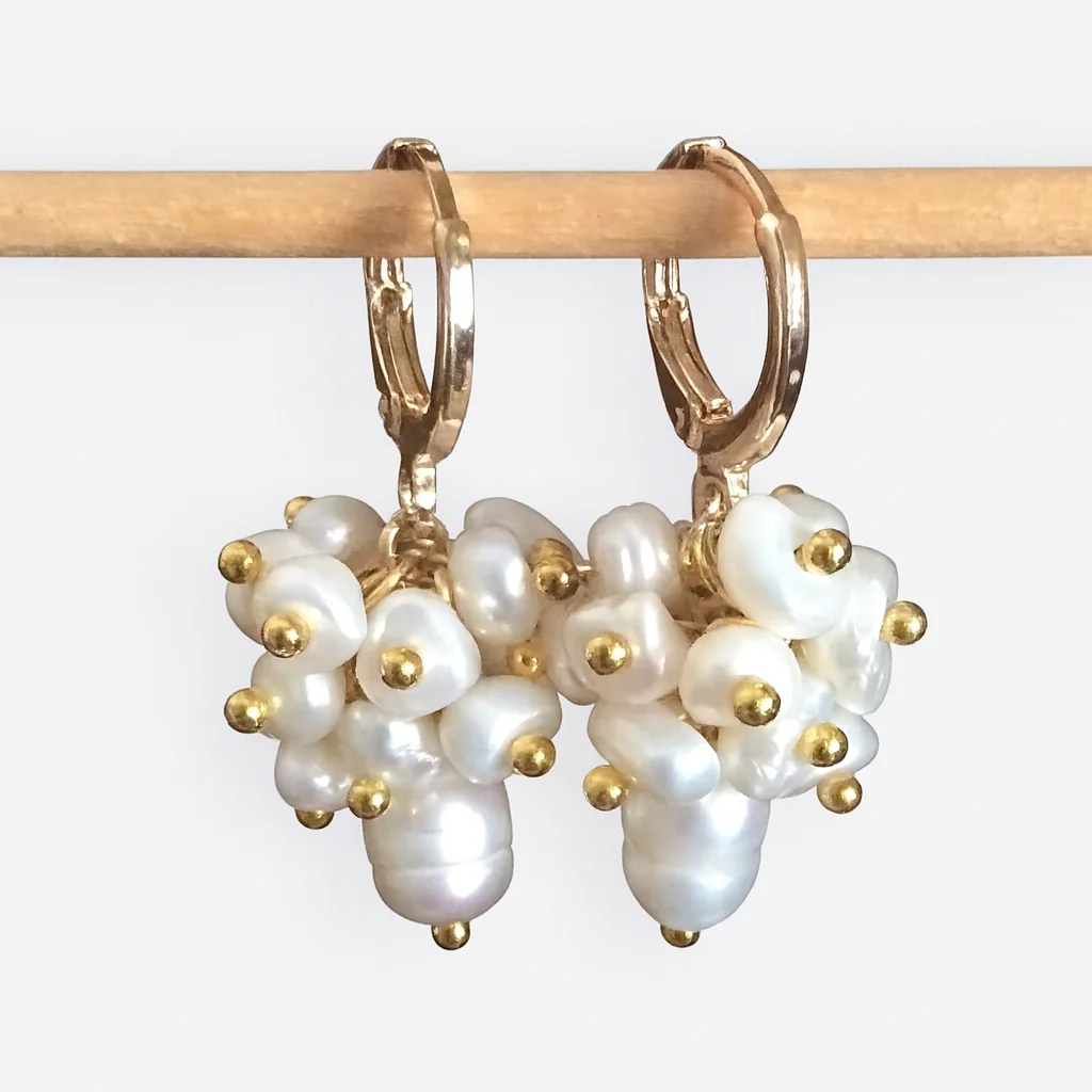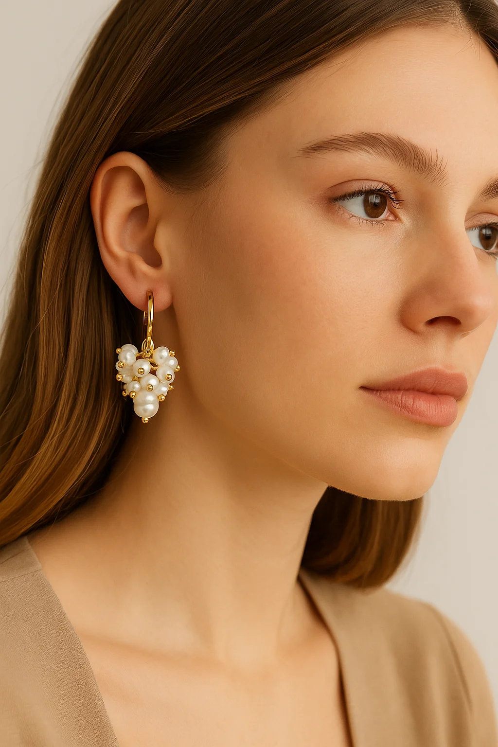 Los aros con racimo de perlas son una joya clásica que nunca pasa de moda. Su diseño, que combina el brillo del oro y la delicadeza de las perlas de río, los convierte en un accesorio versátil y favorecedor.