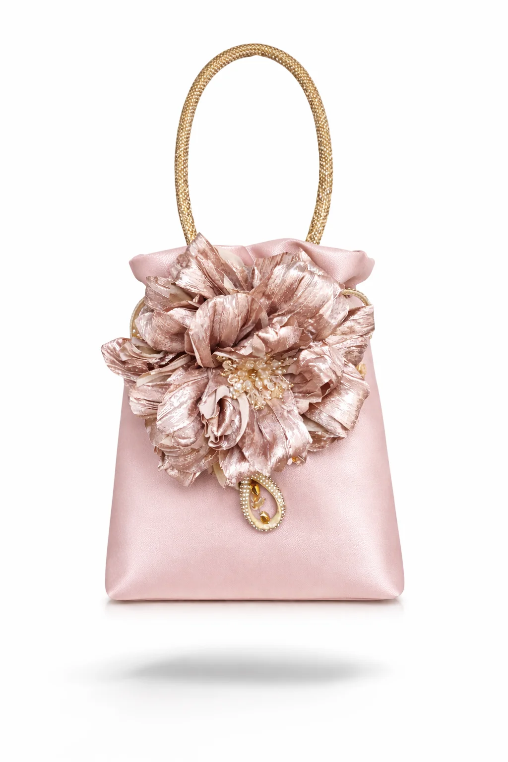 El Bolso Bombonera Rosa Empolvado con Flor y Asa Dorada es una pieza delicada y femenina, pensada para elevar cualquier look de invitada. Su diseño destaca por el suave tono rosa empolvado, combinado con una flor central de gran volumen, y tela de piel sintética en rosa empolvado metalizada que aporta textura y protagonismo al conjunto.