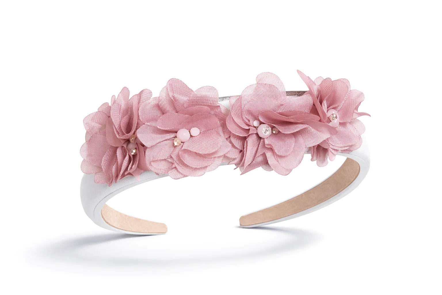 Diadema Flores rosas. Las flores rosas aportan un aire romántico y sofisticado, perfecto para eventos de día.