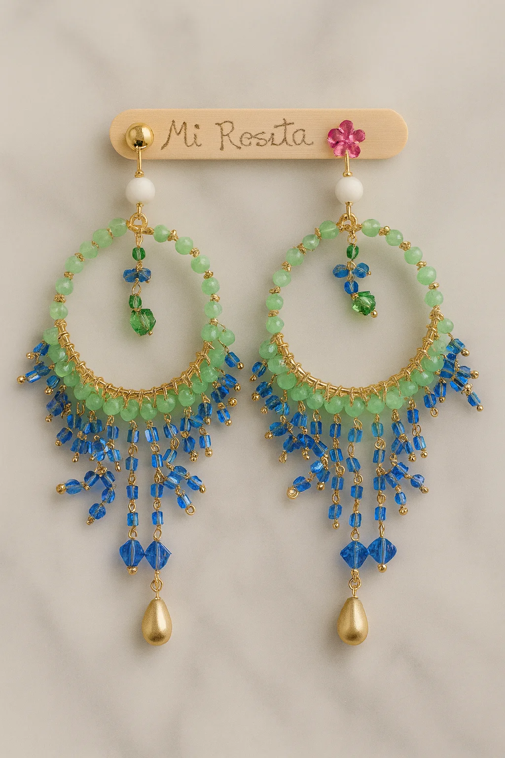Si buscas unos pendientes boho grandes, unos pendientes  con cuentas verdes, o un accesorio único para una ocasión especial, estos pendientes son la opción ideal.