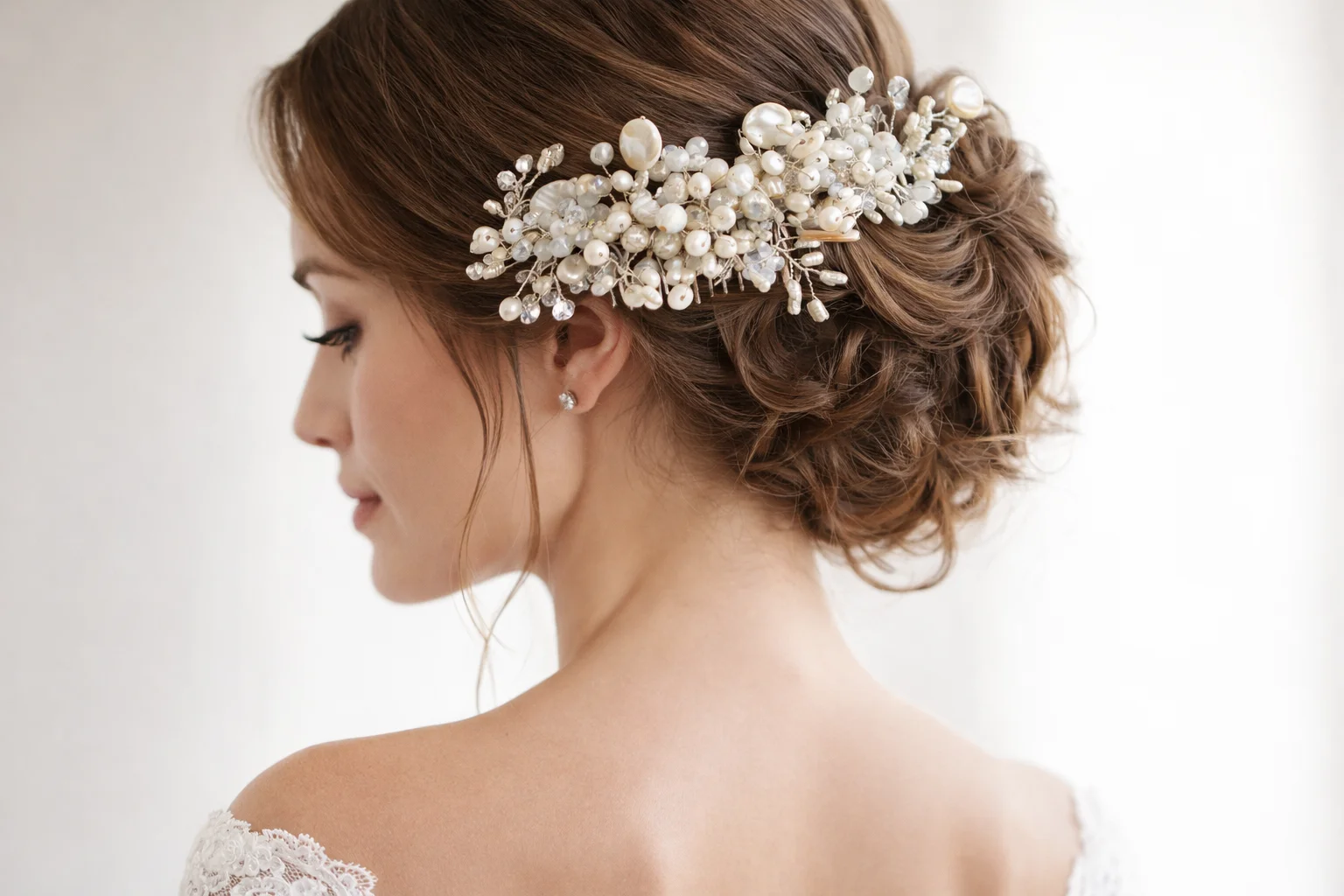 Descubre este tocado para novia artesanal en blanco roto  hecho a mano, un complemento único y lleno de elegancia, creado para realzar la belleza de las novias bohemias y románticas. Este accesorio artesanal combina una delicada estructura de alambre con perlas de río naturales, brillantes cuentas de cristal facetado y detalles de nácar en color blanco roto, que aportan un acabado sofisticado y luminoso.